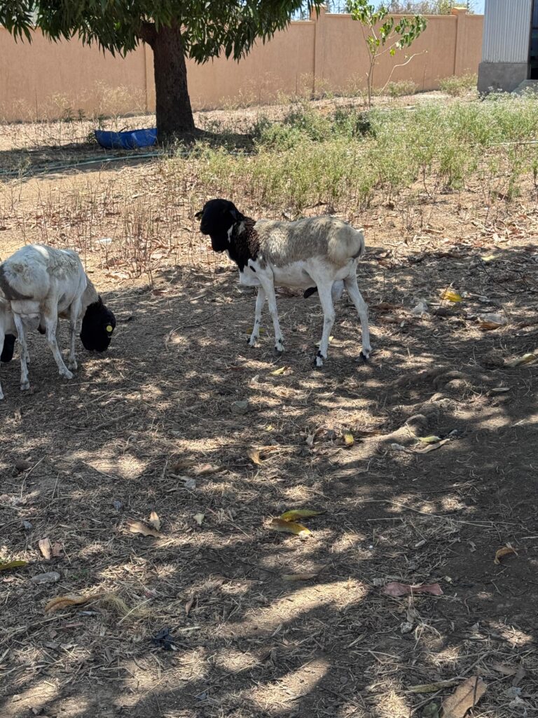 Auf dem bisher unbebauten Teil unseres Schulgrundstücks pflanzen wir zur Zeit nicht nur Nutzpflanzen wie Maniok oder Obstbäume an, sondern nutzen es auch, um Schafe